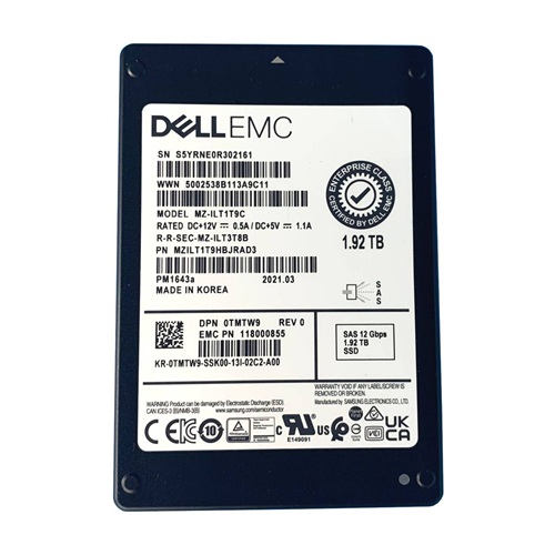 1,92TB SSD SAS 12Gbps 2.5", Samsung PM1643a MZ-ILT1T9C, Dell 0TMTW9 | |