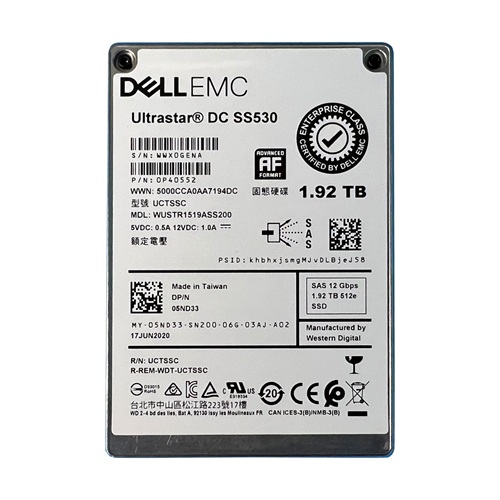 1,92TB SSD SAS 12Gbps 2.5", Western Digital Ultrastar DC SS530 WUSTR1519ASS200, Dell 05ND33 | |